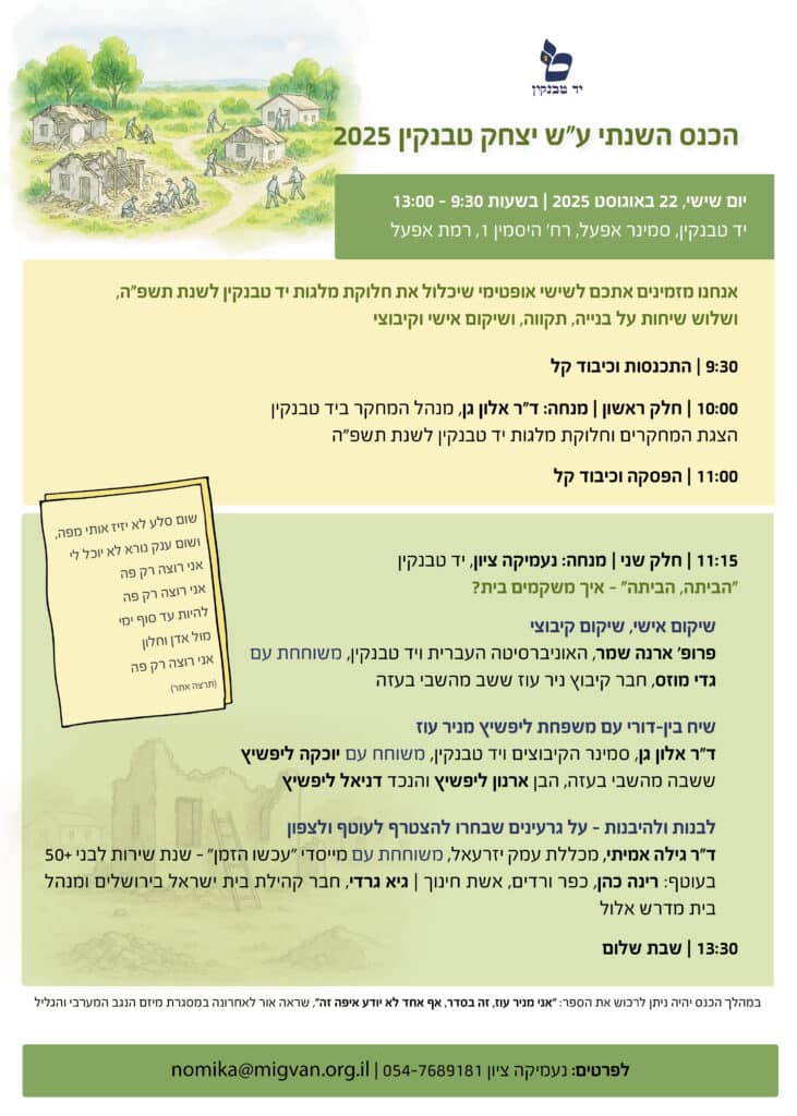 הכנס השנתי ע"ש יצחק טבנקין תשפ"ה | 22.8.25