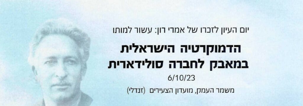 יום העיון השנתי לזכרו של אמרי רון במשמר העמק: עשור למותו – הדמוקרטיה הישראלית במאבק לחברה סולידרית | 6.10.23